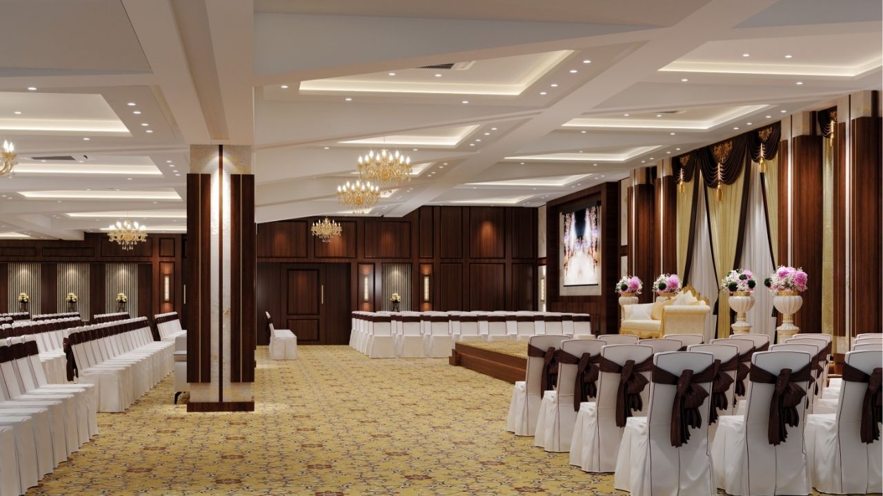 This banquet project was conceived as a luxurious retreat for celebration—an elegant space where classical elements meet contemporary comfort. Nestled in a basement with no access to natural light, the design challenge became an opportunity to reimagine how ambiance could be built entirely through materiality, detailing, and artificial illumination.